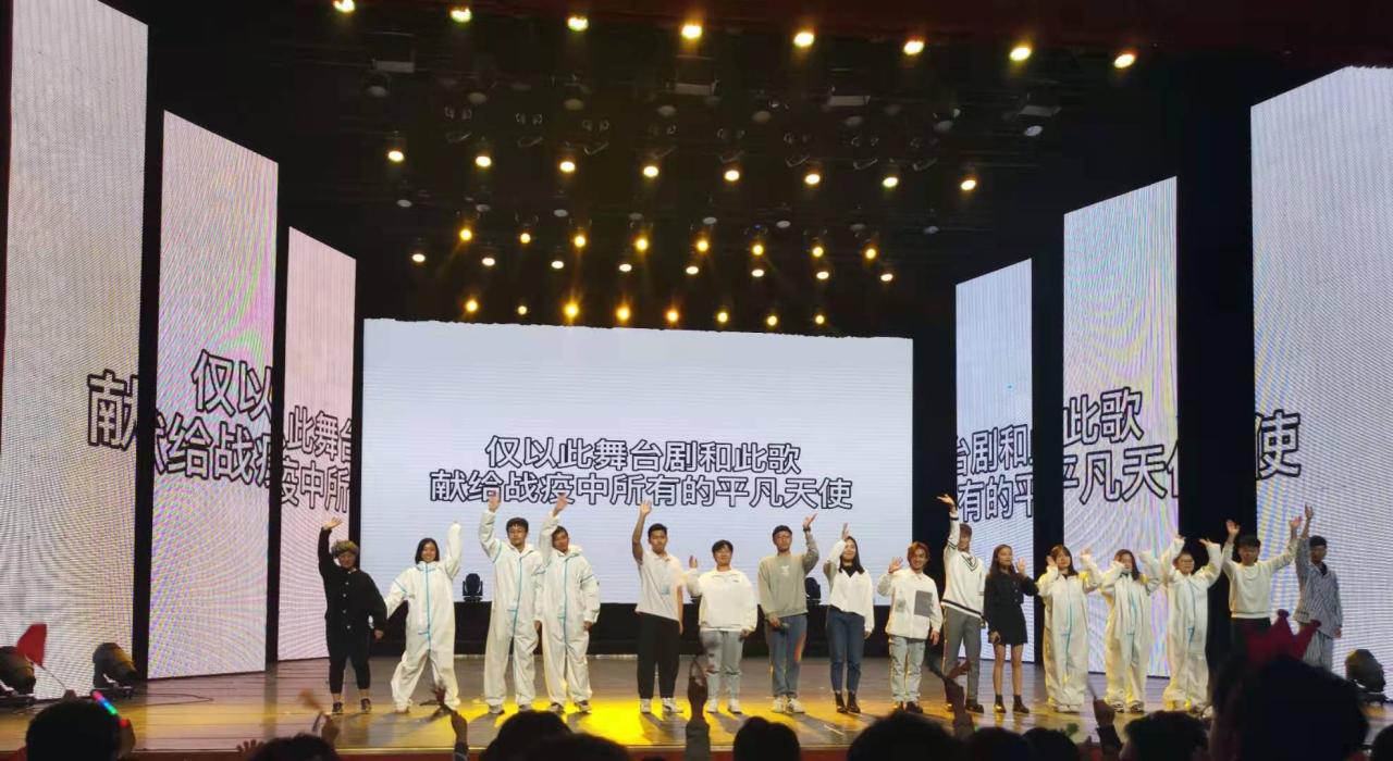 2020年是不平凡的一年,一场突如其来的新冠肺炎疫情席卷全球,给我们的生活带来了巨大的影响。这次疫情中,我们看到了党中央的坚强领导,看到了全国人民的勠力同心。晚会第三篇章:“建功海南,筑时代梦想”,将整场晚会氛围推向了最高潮。学院学生自编自演的抗疫舞台剧《不听劝的她》展现医护工作者的坚韧勇敢2019学院十大歌手代表廖辰东、黄婷、李懿昆、朱梦凡唐瑭深情演绎了抗疫歌曲《平凡天使》,唱出了白衣天使逆行战“疫”的英勇庞春窃、张恩波、贺子阳、尹西垚四位同学以饱满的情感朗诵《你的样子》,配合着抗疫英雄短片的播出,现场很多同学都默默感动落泪这三个节目,是土建学子希望自己的方式向疫情防控中所有默默付出的英雄致敬,向伟大的祖国致敬!