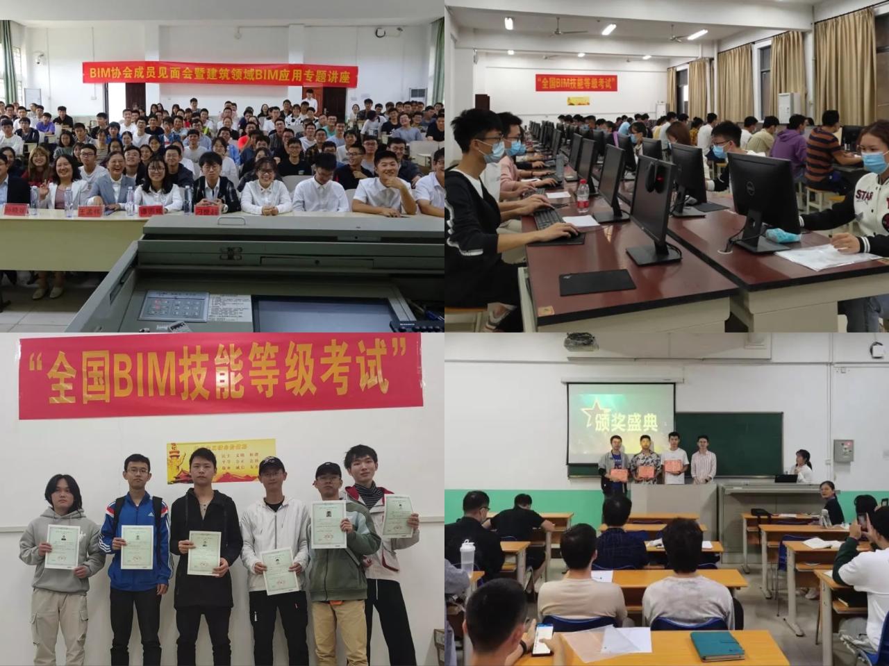 协会特色活动包括:(一)BIM讲座与培训。协会多次邀请国内知名高校教授和广联达、中建二局等知名企业家为会员举办BIM前沿讲座与软件培训,以拓宽学生视野,提高动手实操能力。(二)BIM考证工作。协会设置“全国BIM技能等级考试”Beat365官方网站考点,考试合格将获得中国图学学会颁发的《全国BIM技能等级考试证书》,每年通过培训获得证书者100余名。(三)BIM学科竞赛。协会每年培育各个学生团队,参与全国斯维尔杯BIM-CIM创新大赛、全国大学生结构设计信息技术大赛、全国高校BIM毕业设计创新大赛、全国大学生智能建造与管理创新竞赛等赛事并多次荣获奖项。(四)BIM创新创业项目。协会还为会员提供加入各种科研项目和校级创新创业项目的机会,积极参与“大学生创新创业训练计划项目”和“大学生科技创新基金项目”的申报,支持学生开展创新创业实践活动。