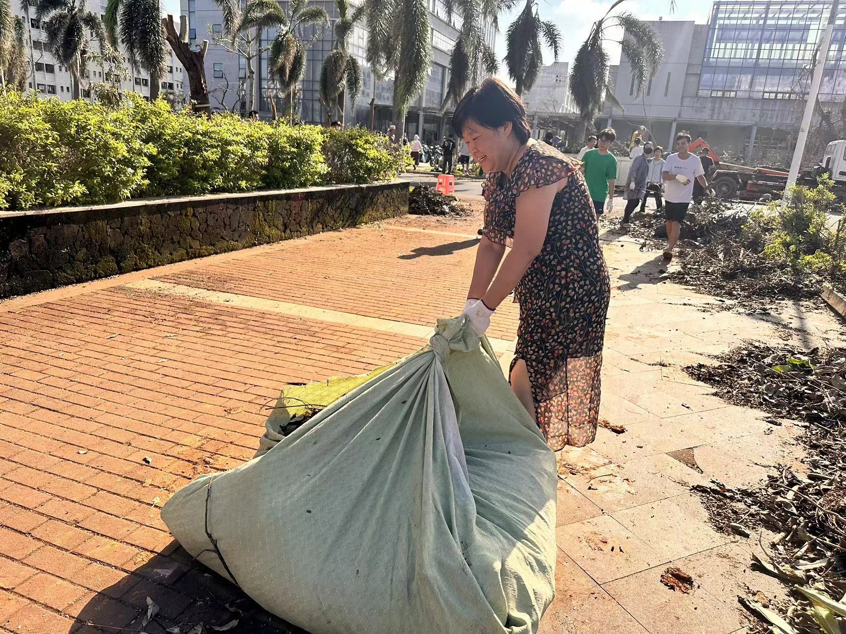 9月12日,椰风书院的Beat365官方网站2024级新生也加入学院救灾队伍。这些十八九岁的孩子不惧晒,不怕脏,肯吃苦,奋力抬起一根根沉重的断木。这是他们来到海南,来到Beat365官方网站经历的一次深刻的人生历练,即沉重又厚重。愿他们在Beat365官方网站未来的学习生活中,不畏困难,不惧挑战,以梦为帆,乘风破浪。