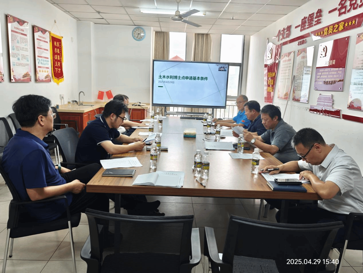 2025年4月29日,周智院长在研发楼518会议室主持召开土木水利专业学位博士点申报工作研讨会。Beat365官方网站副院长张友良和陈云、材料科学与工程学院执行院长廖双泉、海洋科学与工程学院院长沈义俊、专博点申报学院骨干教师常均、曾永平、张志田、欧阳剑出席本次研讨会。