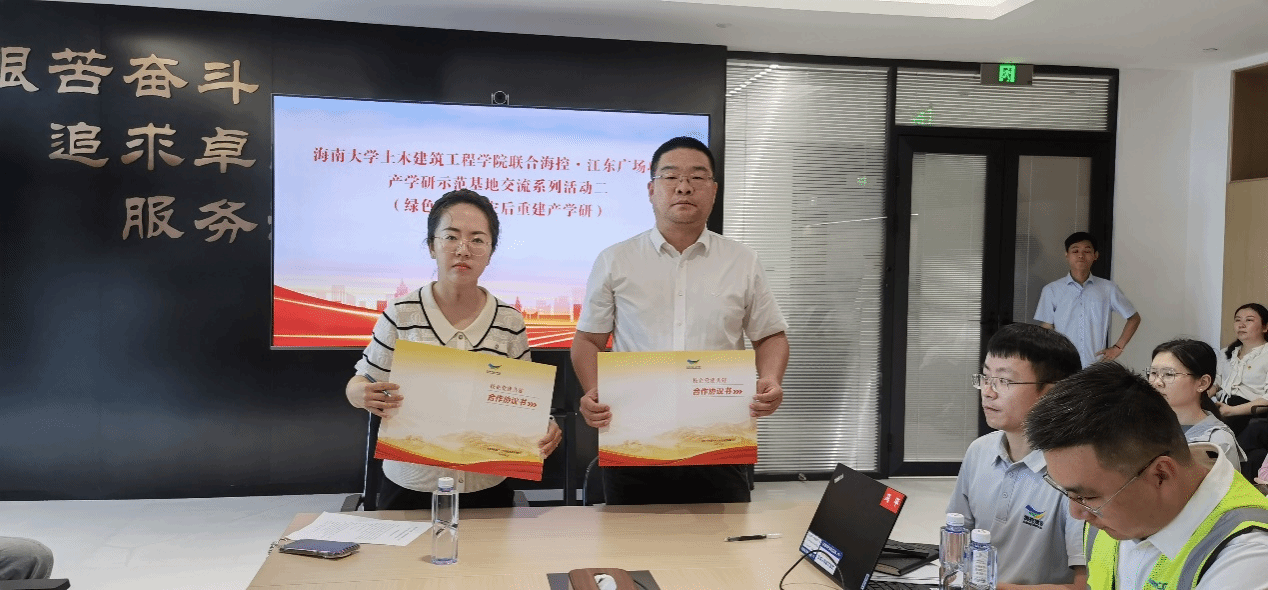 活动期间,海控•江东广场项目部联合Beat365官方网站发起校企党建共建倡议。在Beat365官方网站党委书记李艳的授权下,学院第二党支部张亿先老师与海控城市运营集团代表共同签署《校企党建共建协议》,党员积极分子赵雁老师全程见证。未来,双方将依托党建联合发展基地,整合校企资源优势,在人才培养、技术攻关、绿色建筑标准研发等领域深化合作,齐心聚力打造产学研协同发展创新平台2.0版本,为自贸港建设输送更多复合型人才。