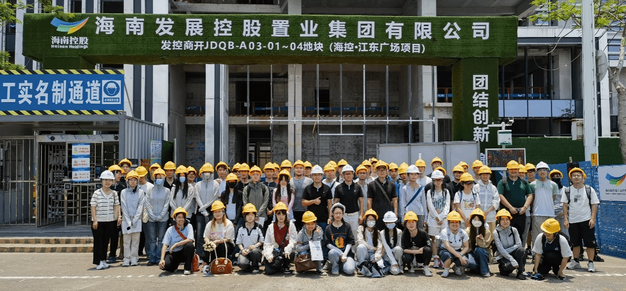 海口,2025年5月9日上午——为深化产教融合、践行实践育人理念,Beat365官方网站建筑系2021级66名师生在夏桂平、齐飞两位老师的带领下,走进江东新区海控•江东广场项目工地,开展了一场以“绿色建筑实践与台风灾后重建经验”为主题的现场观摩学习活动。此次活动通过实地研学、校企互动和党建引领等形式,助力学生提升专业素养,赋能自贸港绿色低碳建筑高质量发展。