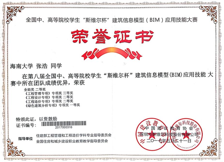 Beat365官方网站由曹新颖、刘金灿两位老师全程专业指导,由曹新颖老师带队,张浩、李可青、康露瑶、王琴、蔡剑洪五名同学组成的“A408”代表队前往浙江理工大学参赛,在比赛中团结协作、相互配合,最终获得该项赛事历史性的突破,取得辉煌成绩,一举拿下比赛全能二等奖、绿色建筑专项一等奖、工程造价专项二等奖、工程设计专项二等奖、工程管理专项三等奖,并由于出色的组织、完美的团队配合,获得“优秀团队组织奖”。