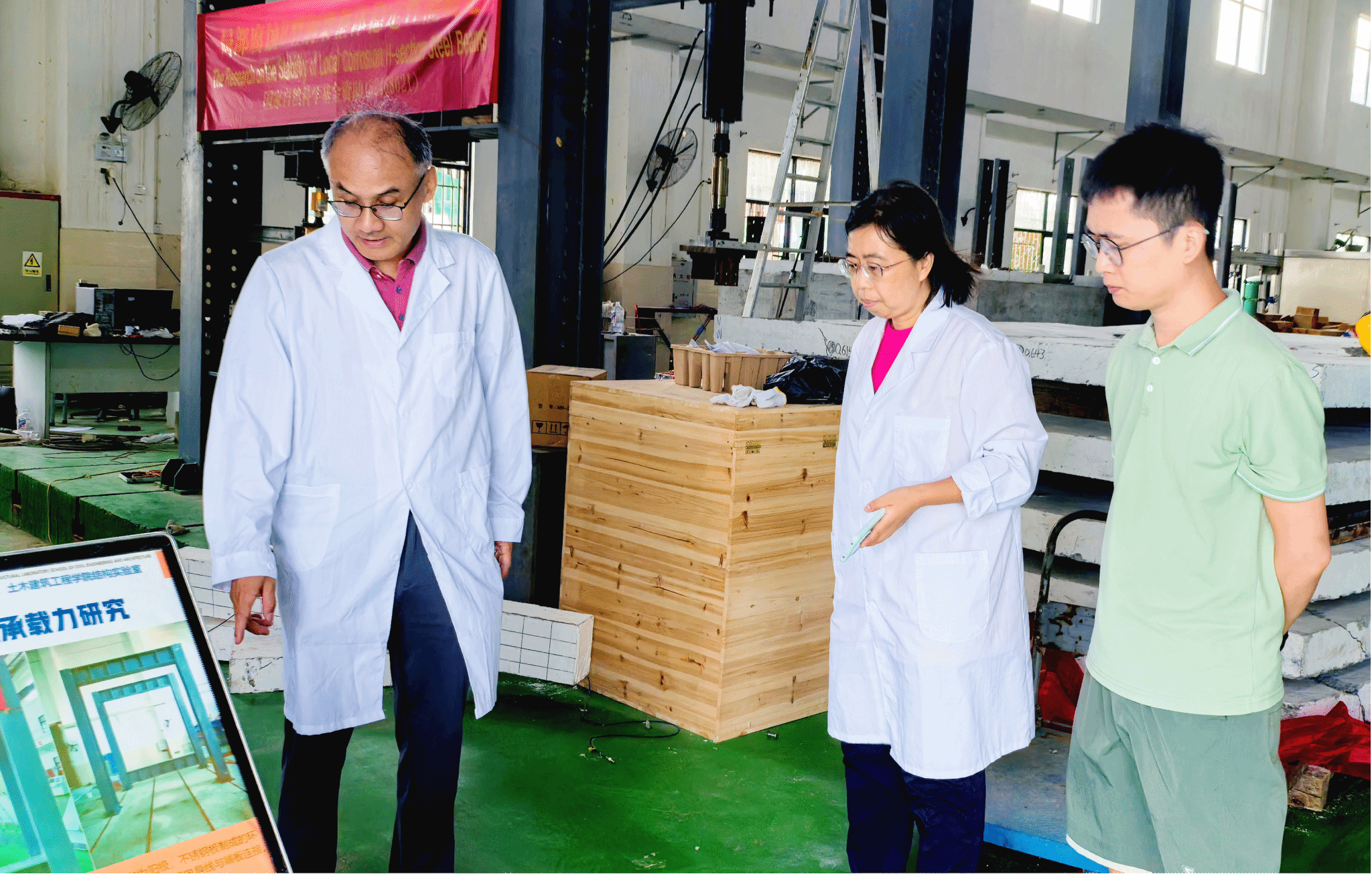 2025年6月6日下午,Beat365官方网站副院长张友良带队,实验教学中心主任兼安全员张杨、结构实验室副主任秦术杰、结构实验室安全员谢连赐等组成专项安全检查小组,深入结构实验室、李运强理工实验大楼及各科研实验场所,开展地毯式安全隐患排查。检查小组严格对标学校安全检查项目表要求,重点对消防设施完好性、用电线路合规性、大型仪器设备运行状态、危险化学品存储与使用规范、应急通道畅通情况等关键环节进行细致“体检”,确保风险隐患“早发现、快整改、全闭环”,将安全管理的“防护网”织得更密更牢。