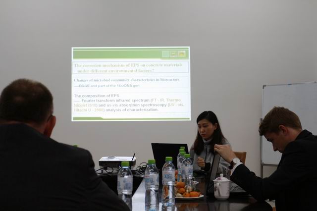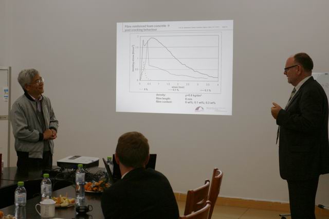 24日下午3:00,Bernhard Middendorf教授在海洋工程材料研究中心会议室进行了题为《Application research of ultra-high performance concrete(UHPC) in Europe》的全英文报告,报告主要就超高强混凝土在欧洲的应用研究、低收缩水泥基材料及特殊混凝土氯离子渗透的混凝土外加剂的影响几方面内容进行了介绍,我学院汪峻峰教授指导的6名学生也用英文汇报了自己的研究内容,中德双方教授、学生相互提问、讨论交流,学术氛围十分浓郁。