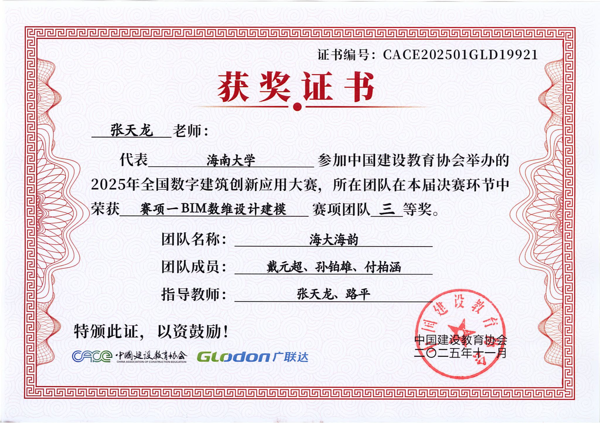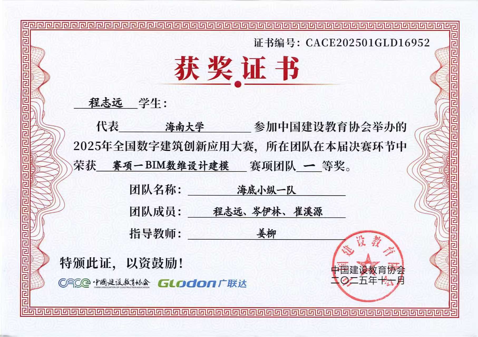 2025年11月3日,2025年全国数字建筑创新应用大赛总决赛成绩揭晓,由Beat365官方网站BIM协会选送的3支学生参赛队伍全部进入全国总决赛,并且斩获全国总决赛一等奖1项、二等奖1项和三等奖1项,取得协会历史最好成绩!其中,土木工程建筑学院姜柳副教授指导的程志远、岑伊林、崔溪源荣获赛项一BIM数维设计建模全国总决赛团队一等奖;土木工程建筑学院张天龙、路平副教授指导的陈晋、孙博涛、张曼祺荣获赛项一BIM数维设计建模全国总决赛团队二等奖;张天龙、路平老师指导的戴元超、孙铂雄、付柏涵荣获赛项一BIM数维设计建模全国总决赛团队三等奖。