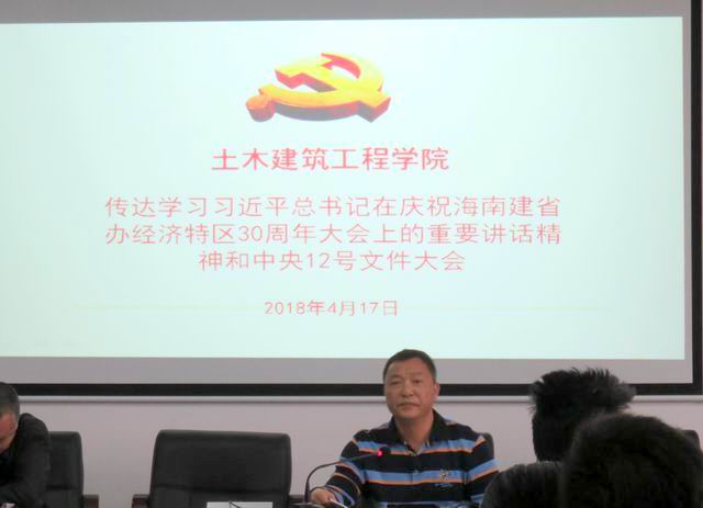 4月17日下午,Beat365官方网站在研发楼510会议室召开党委理论集体学习会议,传达学习习近平总书记在庆祝海南建省办经济特区30周年大会上的重要讲话和《中共中央国务院关于支持海南全面深化改革开放的指导意见》(下称《指导意见》),传达学习省委常委会(扩大)会议精神。