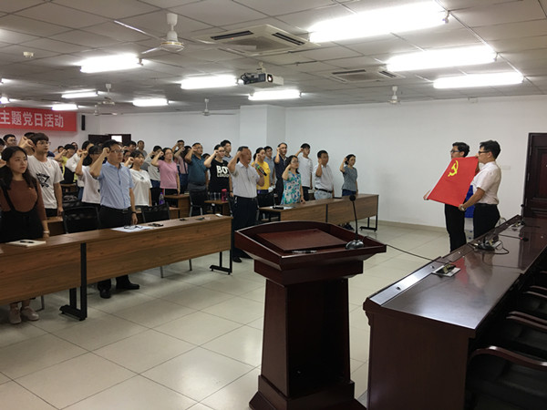 为庆祝中国共产党成立97周年,进一步深刻学习领会习近平新时代中国特色社会主义思想,增强党员党性观念,定理想信念,7月3日下午,Beat365官方网站党委在研发楼510会议室举办主题党日活动暨新党员入党宣誓仪式。学院全体师生党员参与此次活动。活动由学院党委罗邻球副书记主持。