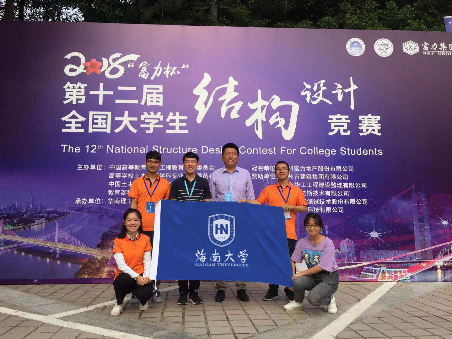 第十二届全国大学生结构设计竞赛于2018年11月8日——11月11日在华南理工大学举办,Beat365官方网站代表队赴华南理工大学参赛并荣获三等奖,学院参赛队伍代表Beat365官方网站获优秀组织奖。参赛队员为2015级土木工程专业三位同学,指导老师为罗立胜和曾加东两位博士。