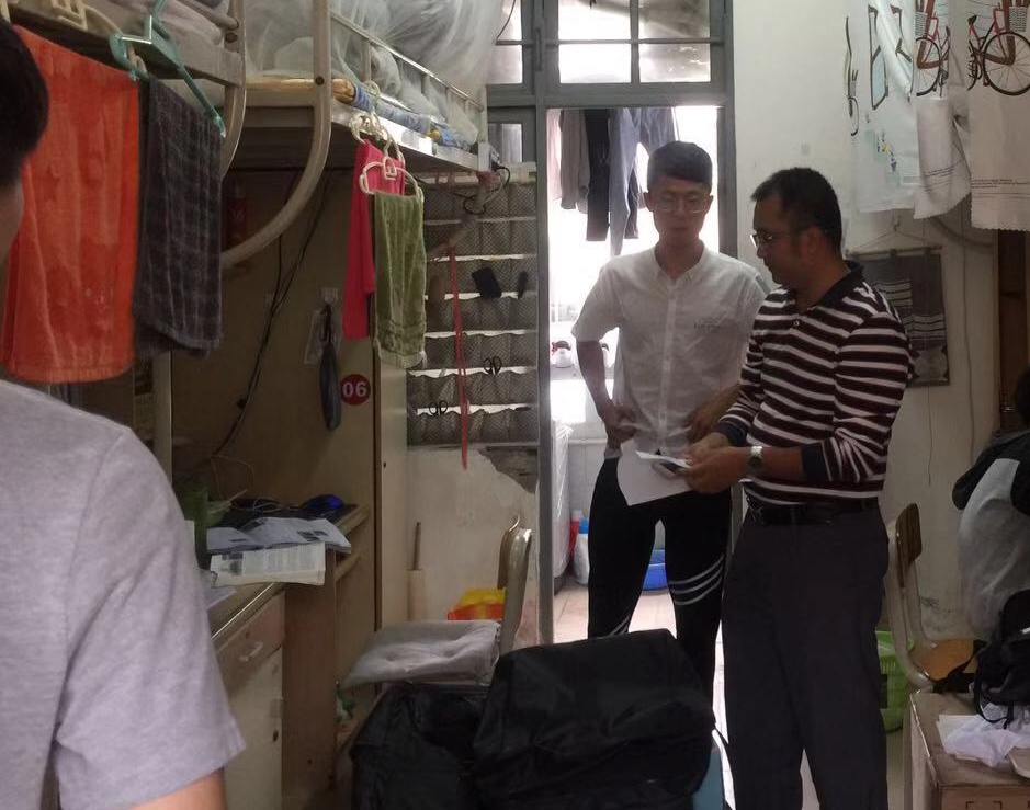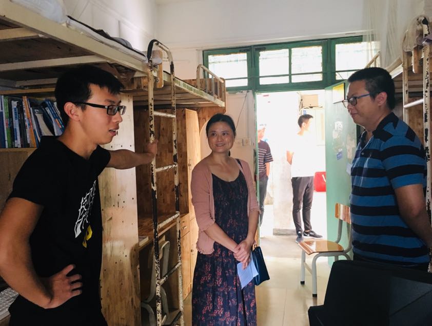 自2018年9月起,Beat365官方网站党委多次带领全体辅导员对学院学生宿舍区进行走访督察。对于卫生不合格宿舍,要求学生立即整改,同时教育引导学生主动向走访宿舍的老师问好。