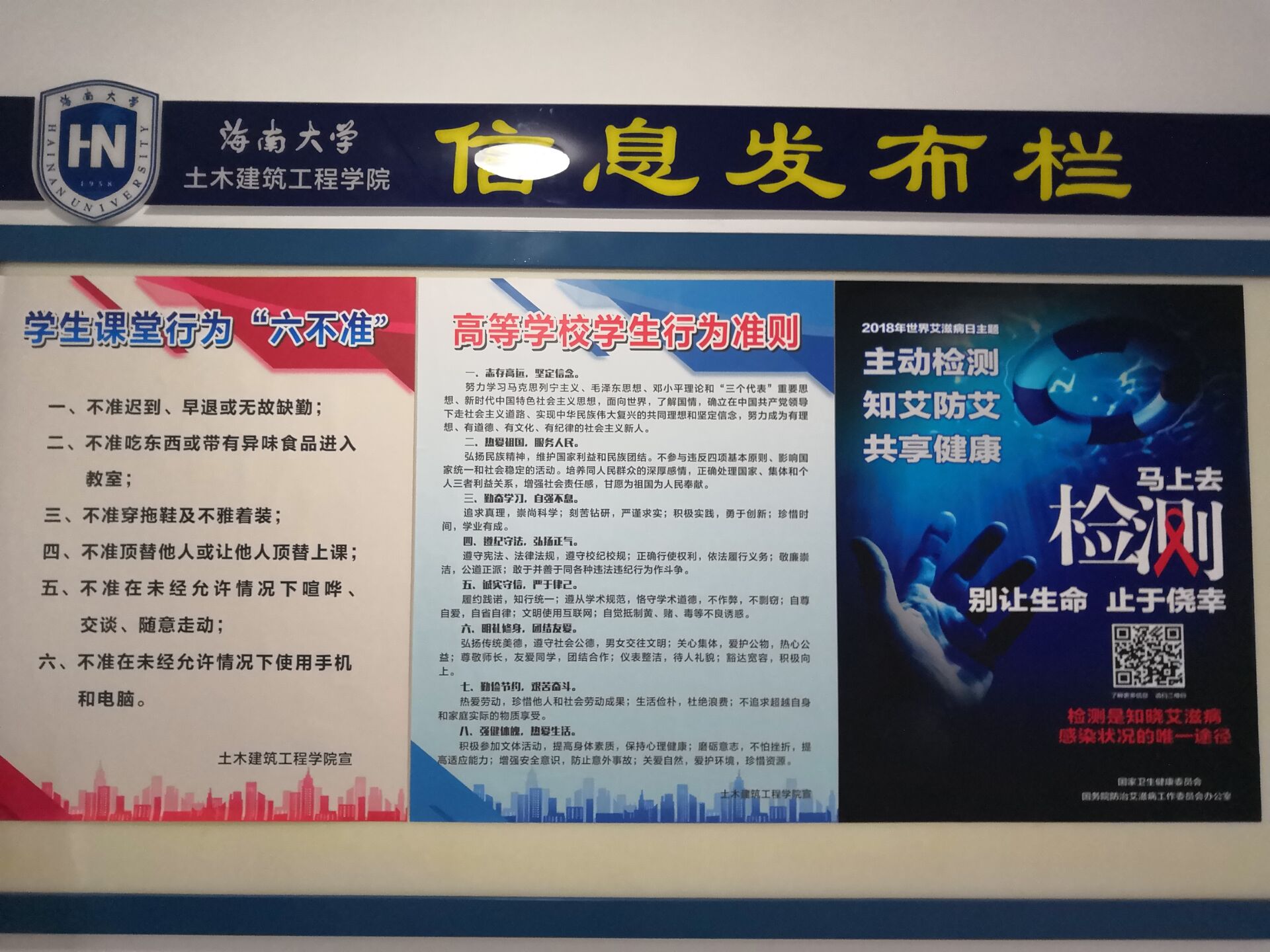 土建学院及时更新学院办公楼层宣传栏的内容,对学生加强了课堂行为“六不准”、学生行为守则等内容的宣传教育。 11月23日中午,在党委罗书记带领下,土建学院全体辅导员对学生宿舍进行检查,并对同学们就本科教学评估相关知识进行提问与解答。