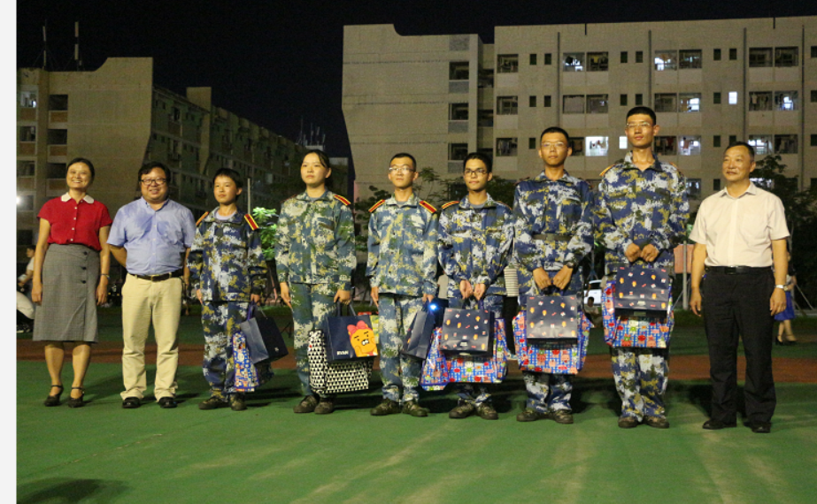 首先,党委卢江海书记致辞。他首先对为同学们辛苦军训的各位教官们表示诚挚的感激,对坚强面对军训的考验的2019级新生们表示亲切慰问和关怀,期望他们能在军训中磨练意志、强健体魄。随后,周智院长表达了他对新生们的中秋祝福。在热烈的掌声中,周院长、卢书记与罗副书记为教官以及新生代表送上了中秋慰问品。