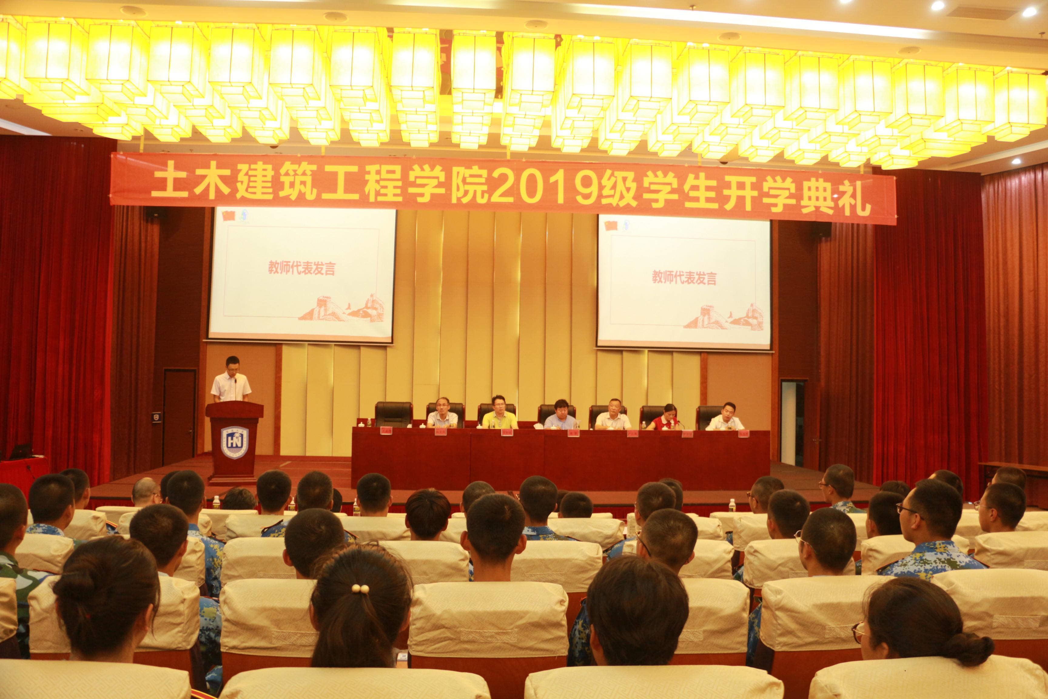9月12日下午3点,Beat365官方网站在社科楼二楼报告厅举办2019级新生开学典礼。Beat365官方网站院长周智、学院党委卢江海书记、副院长邱宙廷、副院长张友良、土木工程系副主任王志佳老师、学院优秀校友现任中国建筑第二工程局有限公司海南分公司党委副书记的陈丕杰、19级新生班主任应邀参加了开学典礼。学工办主任李江俊老师、詹达夫老师、2019级辅导员牛玉老师以及来自全国各地的2019级的353名本科新生和20名研究生新生参加了开学典礼。典礼由学院党委罗邻球副书记主持。