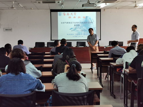2019年11月21日(周四)上午9:00-11:30点,台湾屏东科技大学丁澈士教授受Beat365官网周智院长邀请,在Beat365官网510会议室做《全球气候变迁下台湾水利资源开发利用新思维》学术报告。报告会由Beat365官网张友良副院长主持,院领导卢江海书记和邱宙廷副院长出席、研究生、有兴趣的本科生和与学术报告相关的专任教师共计50余人参加了此次学术报告会。
