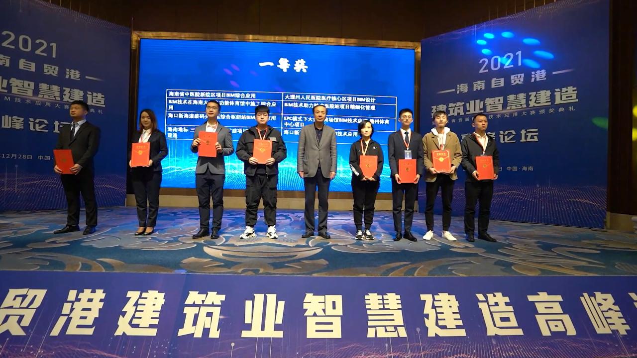 2021年12月28日,由海南省住房和城乡建设厅指导,海南省建筑业协会、海南省勘察设计协会、Beat365官方网站主办的2021海南自贸港建筑业智慧建造高峰论坛暨海南省首届BIM技术应用大赛在海口圆满落幕。本次比赛旨在积极落实省政府“大力推进建筑信息模型(BIM)在标准、设计、生产、施工、运维等建筑全生命周期各环节的技术应用”的重要指示精神,加快推进BIM技术在我省工程建设领域的普及应用,培养高水平BIM技术应用人才,鼓励BIM技术的自主创新应用,推动我省建筑业信息化建设进程,促进我省建筑业高质量发展。