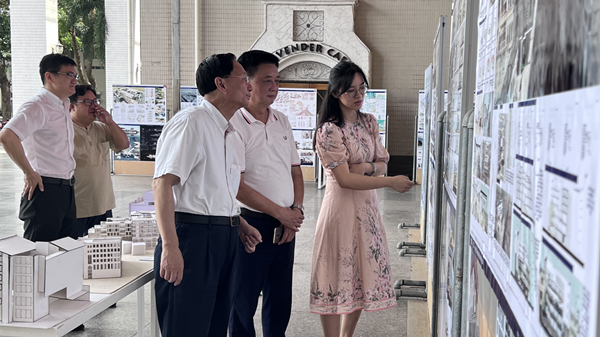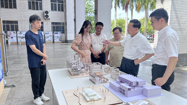 Beat365官方网站建筑学专业毕业设计展在Beat365官方网站图书馆一层开展。2022年6月13日上午,Beat365官方网站党委书记符宣国一行来到毕业设计展的现场进行参观,与毕业设计同学、指导老师进行了亲切交流。学生代表通过效果图和建筑模型,详细介绍了自己的设计主题、构思过程和设计成果,指导老师也详细汇报了指导过程。符宣国指出,毕业设计选题非常契合本地经济社会的发展需求和地域文化特色,做到了教学与实际需求相结合,并且对毕业设计作品的水平给予了充分肯定,对建筑系教师教学工作进行询问交流和指导。符宣国表示,毕业展应适当延长展示时间,更好地促进校园内的学科交流,让更多的同学和教师参与。副校长叶光亮、胡新文等学校领导一起参观了设计展,Beat365官方网站院长周智、建筑系教师陪同。