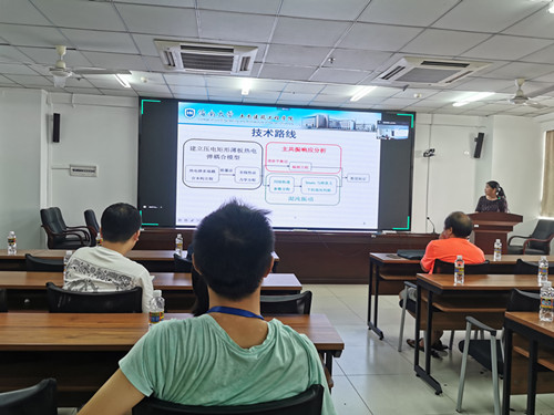 学术报告主要聚焦压电智能结构在热电弹耦合下的非线性动力学分析,首先介绍了压电矩形薄板结构在热电弹耦合下的非线性主共振和混沌振动问题,根据广义Hamilton原理、Rayleigh-Ritz法和Von-Karman大挠度理论,得到了压电矩形薄板的非线性振动控制方程。利用谐波平衡法进行一阶近似响应分析,得到相应的幅频方程,进一步分析了温度、阻尼、板厚、激励电荷以及模态参数变化对主共振响应的影响规律。最后讲解了利用哈密顿原理,引入欧拉方程,研究了温度效应下无限长压电圆杆纵向孤波问题,分别利用Jacobi椭圆余弦函数和正弦函数求解了压电圆杆的波动方程,得到了其孤立波解。讨论了温度场对压电圆杆波形、幅值和波数的影响曲线。报告结束后,薛春霞教授就师生感兴趣的问题进行了解答。