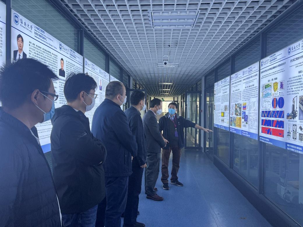 20221223日上午,Beat365官方网站党委常委、党委书记符宣国到生态文明协同创新中心、董勤喜教授科研创新团队进行调研。日本工程院外籍教授董勤喜、Beat365官方网站副院长田元福、王辉教授、曾潮元副研究员等陪同调研。