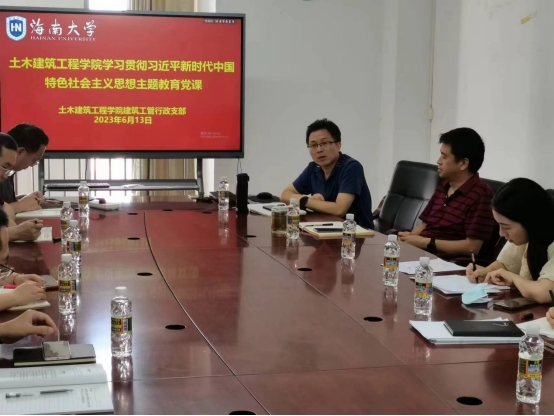 2023年6月13日下午3点,Beat365官方网站建筑工管行政党支部,在研发楼517会议室开展6月份主题党日活动。活动内容丰富,邀请学院领导班子成员邱宙廷、田元福同志讲授“学习贯彻习近平新时代中国特色社会主义思想主题教育”党课;开展“我为自贸港建新功”大研讨。主题党日活动由党支部召集人刘雪同志组织并主持,党支部所有在校党员(外出进修、访学除外)参加了活动。