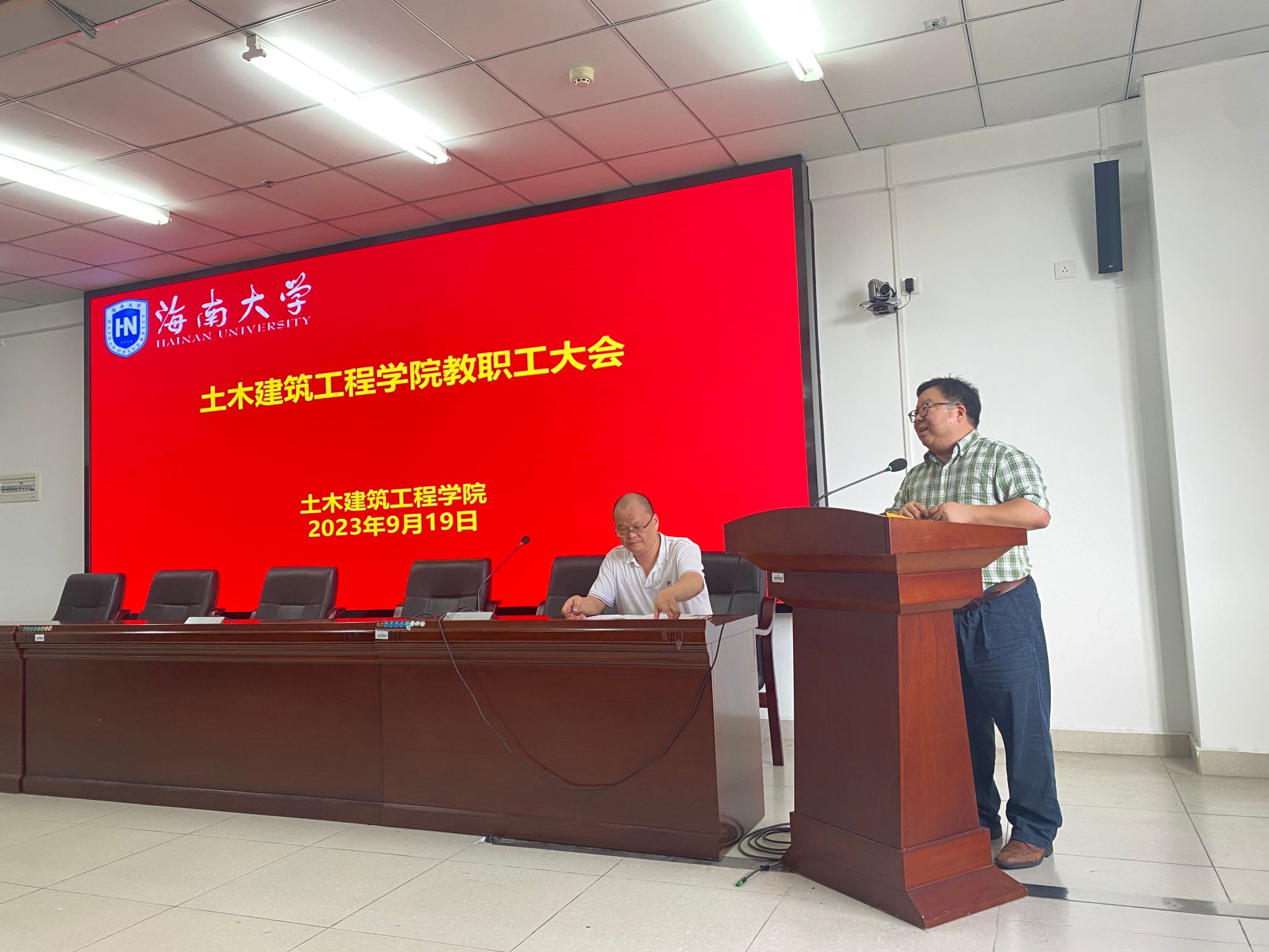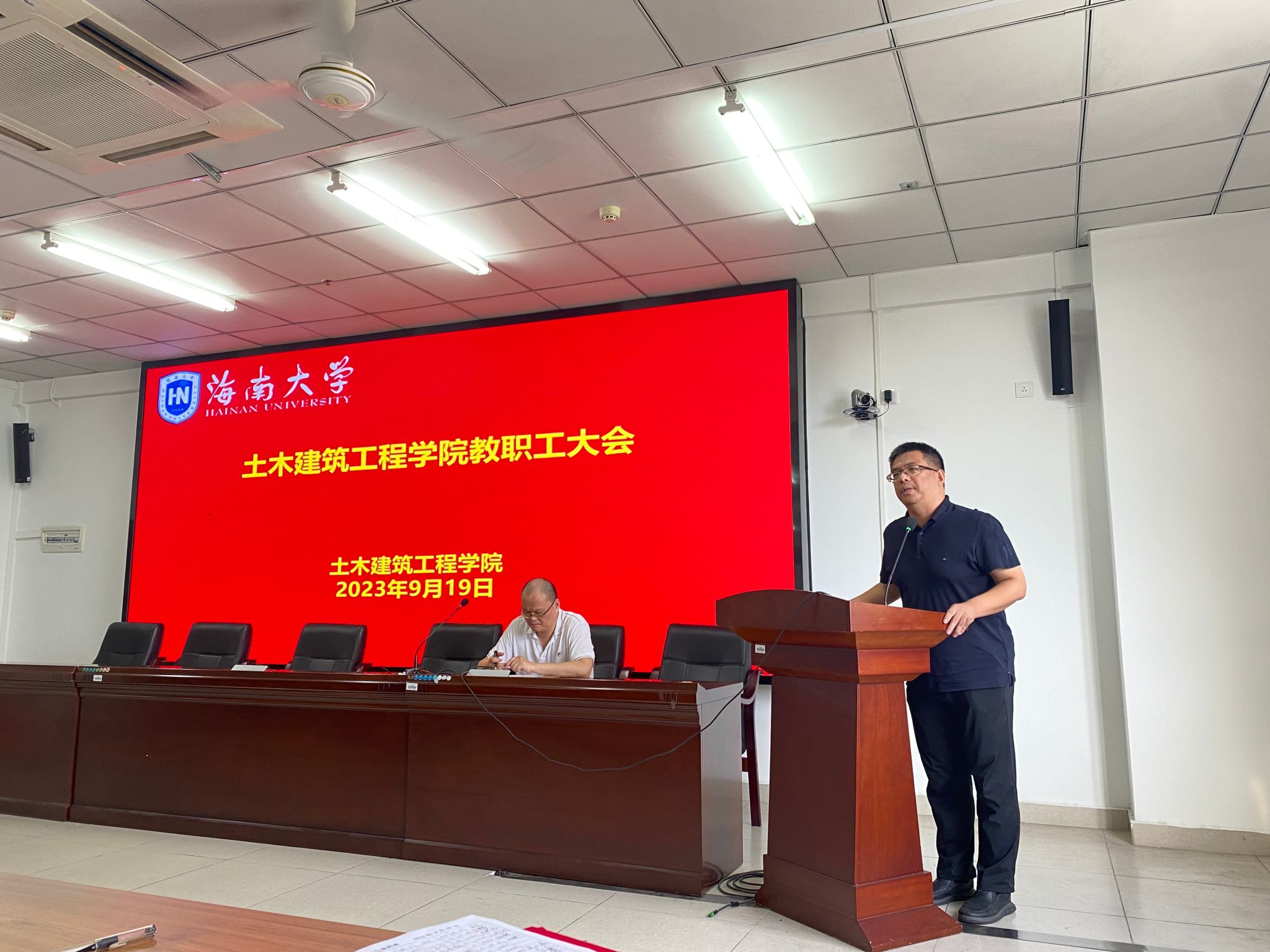 2023年9月19日下午,Beat365官方网站新学期教职工会议在研发楼510报告厅召开。党委副书记万民、院长周智、副院长张友良、副院长田元福、副院长辛大波、副院长薛春霞、系主任、实验教学中心负责人、科室管理职员和全体教师等参加会议。会议由学院党委副书记万民主持。会议分三个议程进行