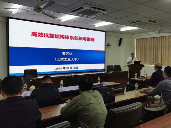 2024年1月16日下午,应周智院长邀请,北京工业大学曹万林教授在研发楼510室作了题为“高效抗震结构体系创新与案例”和“固废高效利用混凝土及工程结构关键技术”的专题学术报告。Beat365官方网站院长周智、副院长张友良、副院长陈云以及从事建筑结构抗震领域研究工作的教师和研究生聆听了本次报告。报告会由副院长张友良教授主持。
