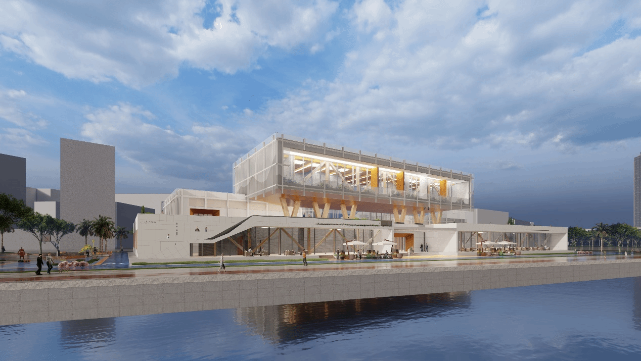 方案旨在充分利用滨水空间,以似山的体势回应丘海湖景观,其室外路径串联不同高度的灰空间,以创造连续且丰富的漫游体验。