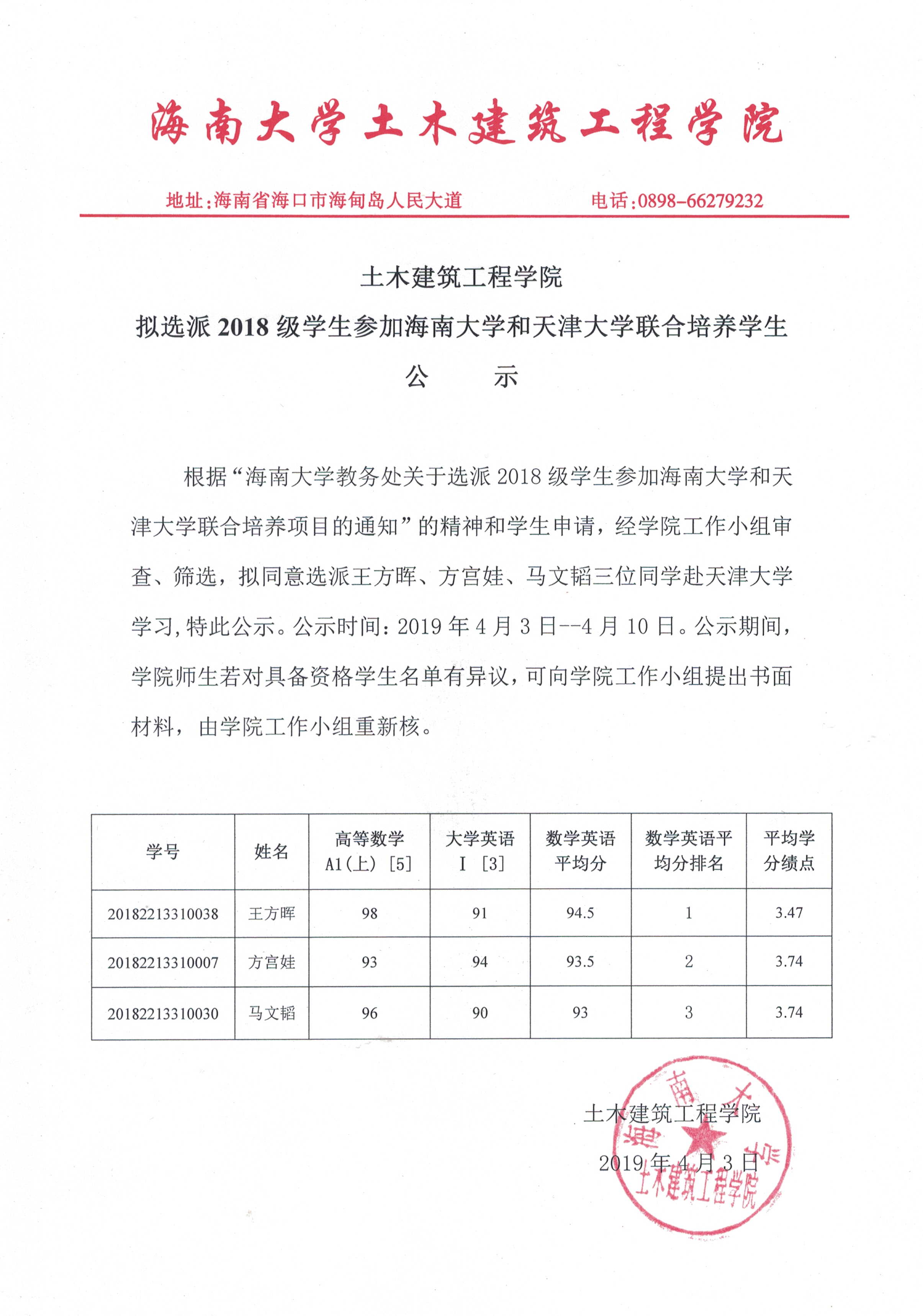 2018级工程管理专业天大联合培养学生名单公示