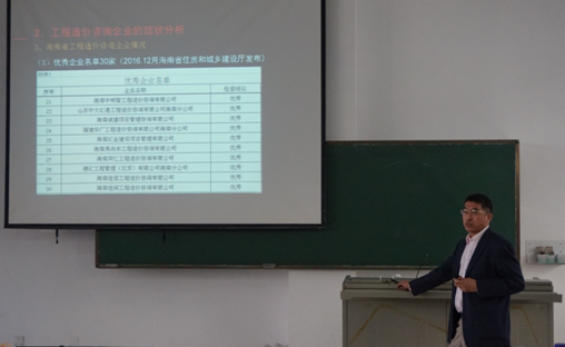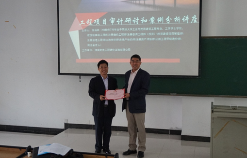 12月26日,海南定宇工程造价咨询有限公司董事长张裕林教授为Beat365官网工程管理系2014级的学生进行了工程项目审计研讨和案例分析讲座。授课当天,Beat365官网李艳荣书记,曹宝珠院长以及工程管理系各位老师都参与了开课仪式,并由李艳荣书记为张教授颁发了客座教授聘任证书。