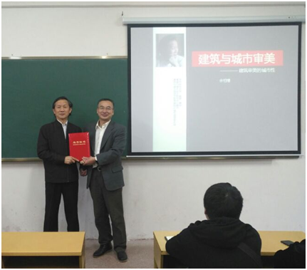2018年1月8日—1月13日,Beat365官网邀请了华中科技大学的余柏椿教授,为2015建筑学专业学生讲授《建筑与城市审美》课程。授课当天学院院长曹宝珠出席开课仪式,并颁发了冬季小学期授课专家聘任证书。余教授现任职务为华中科技大学建筑与城市规划学院教授、博导,城市与景观设计研究中心主任等。主要的研究方向是城市设计、城市景观设计、城市与景观特色、城市发展与城市规划。