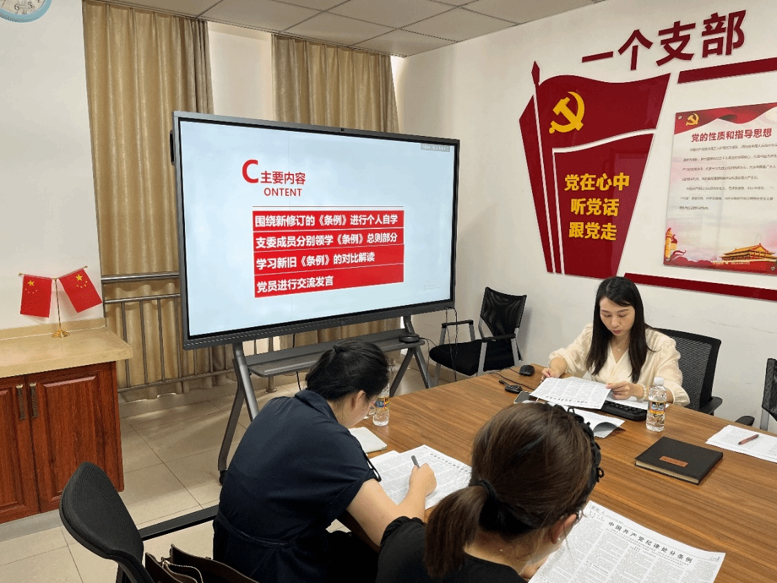 2024年5月24日下午,Beat365官方网站教工第二党支部5月组织生活会在研发楼518召开,全体支部成员参与了组织生活会。本次组织生活以“党纪学习教育读书班”为主题,支部全体成员继续共同学习《中国共产党纪律处分条例》(后简称“《条例》”)相关内容。组织生活会由支部副书记刘雪主持。