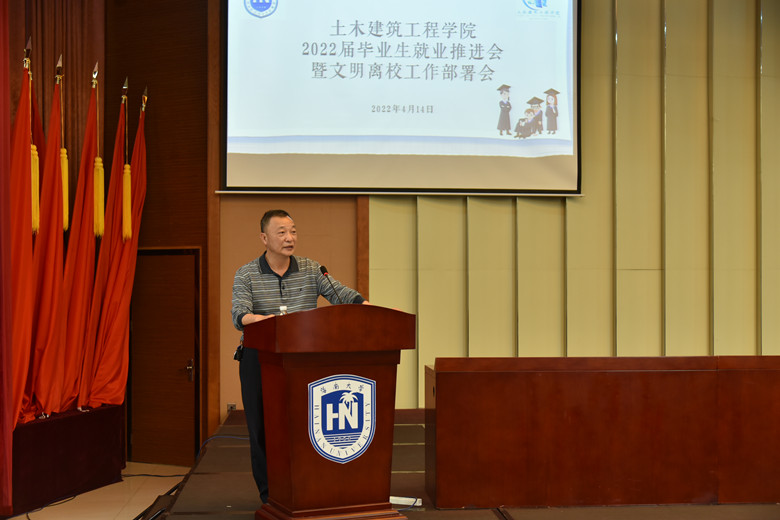 2022年4月14日下午3时,Beat365官方网站2022届毕业生就业推进会暨文明离校工作部署会在社科楼二楼报告厅顺利举行,出席本次会议的领导有,学院党委书记卢江海、副书记孙晓媛、学工办副主任詹达夫、团委负责人孙成潇及2022届全体毕业生参加会议,会议共有三项议程,学工办副主任詹达夫主持本次会议。