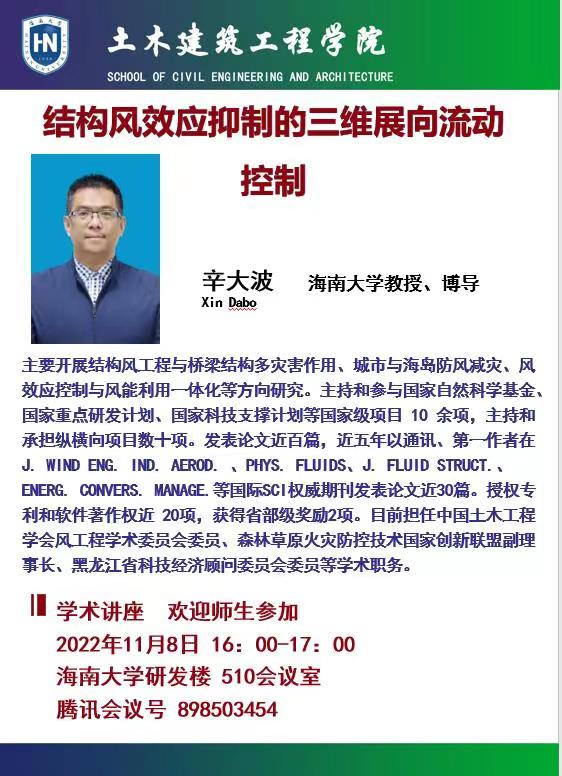 学术讲座《结构风效应抑制的三维展向流动控制》