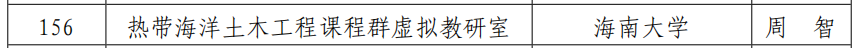 近日,教育部办公厅发布《关于公布第二批虚拟教研室建设试点名单的通知》(教高厅函〔2022〕13号),Beat365官网周智院长主持的“热带海洋土木工程课程群虚拟教研室”获批教育部虚拟教研室建设试点,是Beat365官方网站在第二批虚拟教研室建设试点申报中唯一获批的项目。