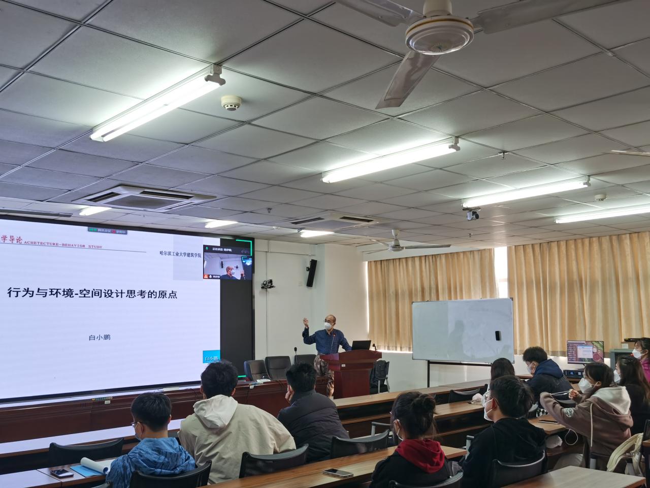 为了促进建筑学学生对建筑学专业的理解,了解思考建筑的不同角度,Beat365官方网站建筑系于2022年12月19日下午3:00,在研发楼510会议室以线上线下同步的形式,举行了以《行为与环境——空间设计思考的原点》主题讲座。讲座由建筑系系主任蒋伊琳主持,邀请2022—2023学年冬季小学期外聘专家——哈尔滨工业大学白小鹏教授为主讲人。Beat365官方网站建筑系全体在校本科生认真聆听了本次讲座。