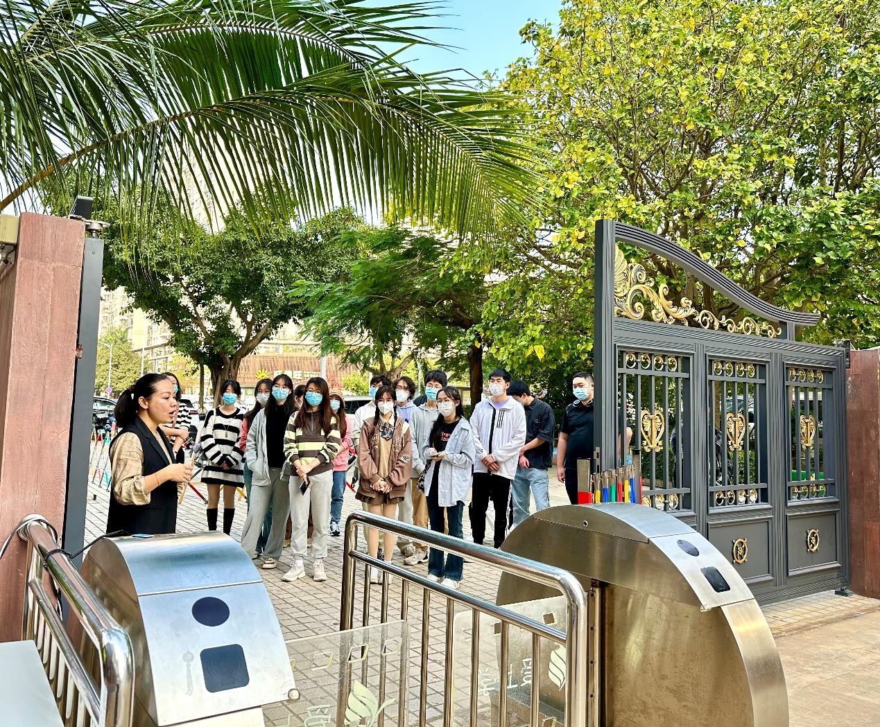 2023年3月3日上午,Beat365官方网站建筑系张华立、易法殊和刘雪老师,带领建筑学专业2021级学生,前往海口市美兰区芬奇郡幼儿园进行《建筑设计2——幼儿园设计》课程前期的实地调研活动。