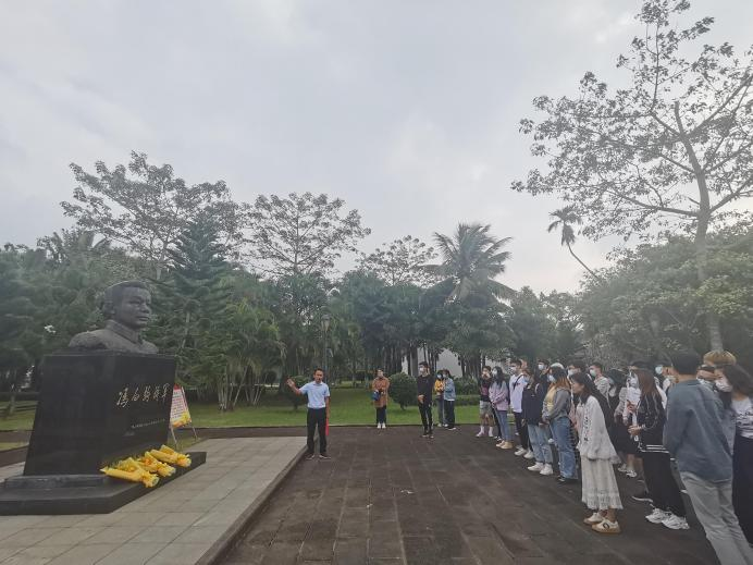 2021年11月18日上午,Beat365官方网站党校Beat365官方网站分党校开展发展对象课外拓展活动,学院组织员白玉、兼职辅导员赖钰莹、全体发展对象、学院团委学生骨干赴琼崖红军云龙改编旧址、冯白驹故居参观学习。