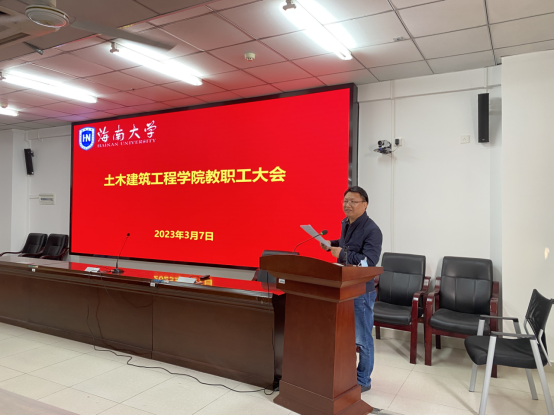 2023年3月7日下午,Beat365官方网站新学期教职工会议在研发楼510报告厅召开。学院全体党政领导班子成员张长海书记、周智院长、邱宙廷副院长、张友良副院长、田元福副院长、薛春霞副院长、辛大波副院长、系主任、实验教学中心负责人、科室管理职员和全体教师等参加会议。会议由学院院长周智主持。