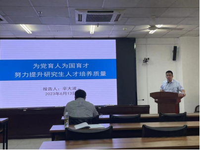 辛大波副院长做了《为党育人、为国育才,努力提升研究生人才培养质量》的主题报告,报告从研究生教育的使命、研究生培养的难点、如何提升研究生培养质量三个方面展开。辛副院长在报告中强调,党的二十大报告中习近平总书记作出了教育、科技、人才是全面建设社会主义现代化国家的基础性、战略性支撑的重要论断,要坚持为党育人、为国育才,全面提高人才自主培养质量,着力造就拔尖创新人才。这也是研究生教育的历史使命。目前,我国在校研究生规模已超300万,提高培养质量势在必行。在导师指导、科学研究、培养方案、学科资源和行业就业等方面都存在相应的难点,需要努力改善。辛院长就如何提升研究生培养质量问题,从导师队伍建设、培养体系构建、科学研究选题、平台建设、招生工作等方面展开了论述,并用五句话进行了概括总结,即:锤炼过硬导师队伍,筑牢人才培养之基;优化完善培养方案,不断提高培养质量;学科交叉既是手段,更是一种思维方式;搞好科研平台建设,反哺于研究生培养;注重平时招生宣传,重在学生口口相传。